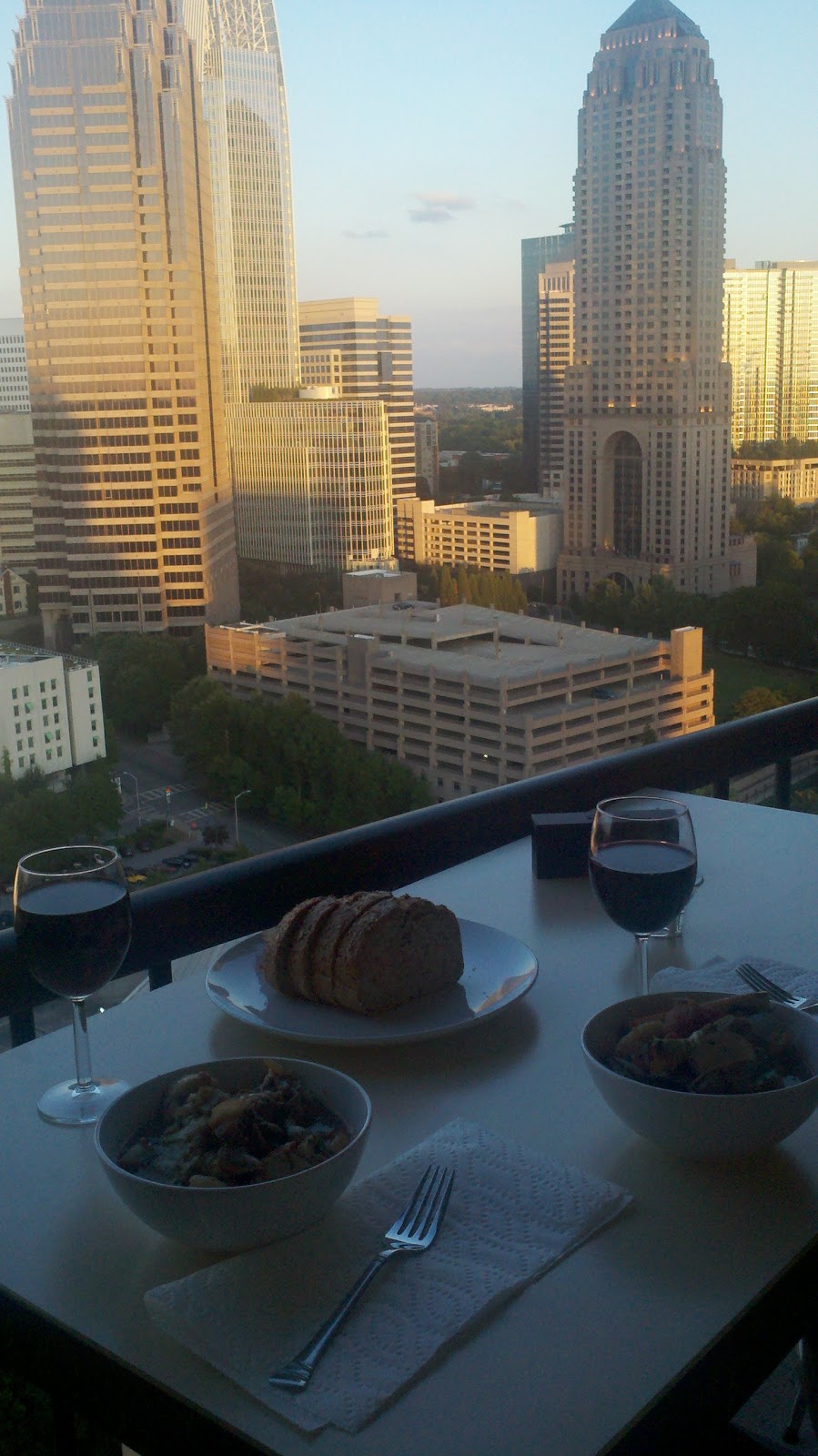 The one I love had a birthday this weekend... so we spent a rare, glorious, 3 days together. I cooked his favorite meal... Cioppino... mmm it's this tomato and wine based seafood stew... bloody amazing. Wine, food, and great conversation... the perfect evening for two... Romance at it best, with a view that's out of this world! Well, two views... his baby blues and the Atlanta sky...